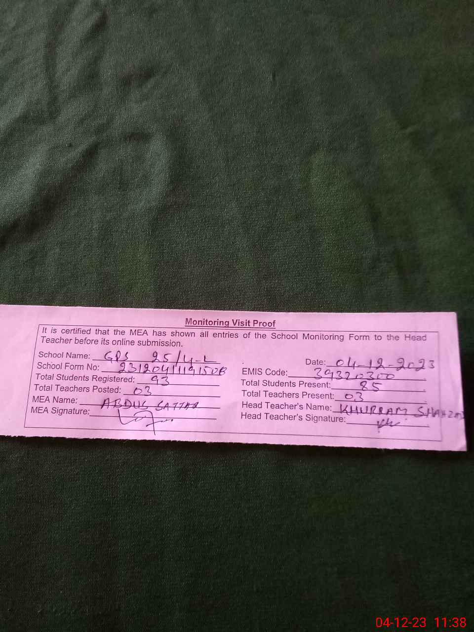 | Name: KH**** SH**** Designation: (School Headmaster's/Headmistress's) PST Phone/Cell Number: 03**** |