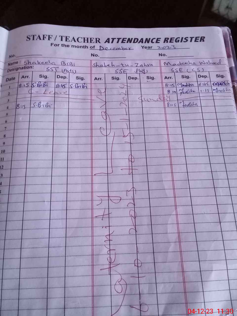 | 36**** | As**** Za**** | 1 | 0 | 0 | 30 | 0 | 0 | 0 | 0 | 0 | 0 | Absent (Un-Authorized) | |