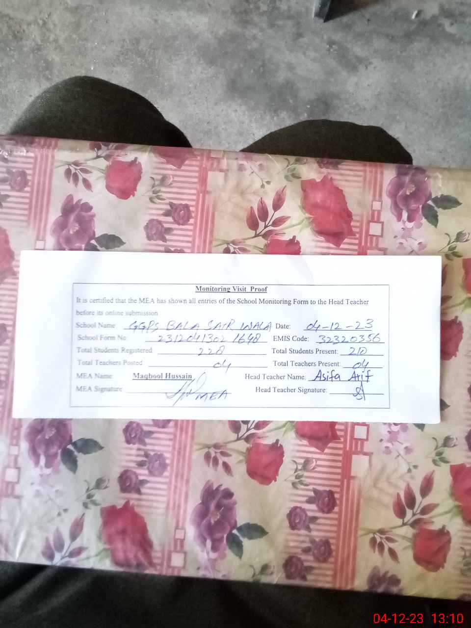 | EMIS Code: 32320356 | Name of School: GGPS BALA SAIR WALA | |||