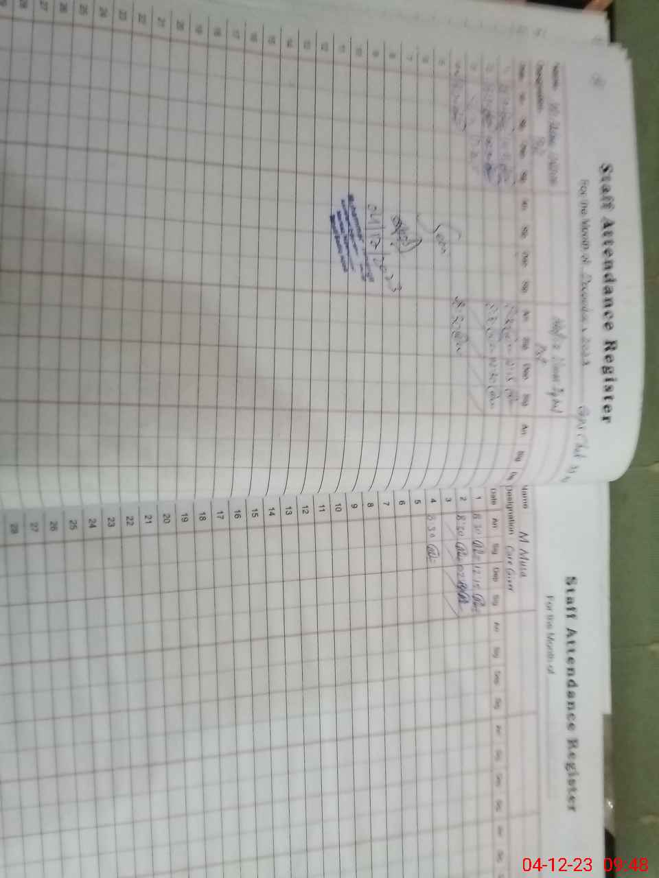 | CNIC | Full Name | Designation | R/C | Absence During Last Calender Month |