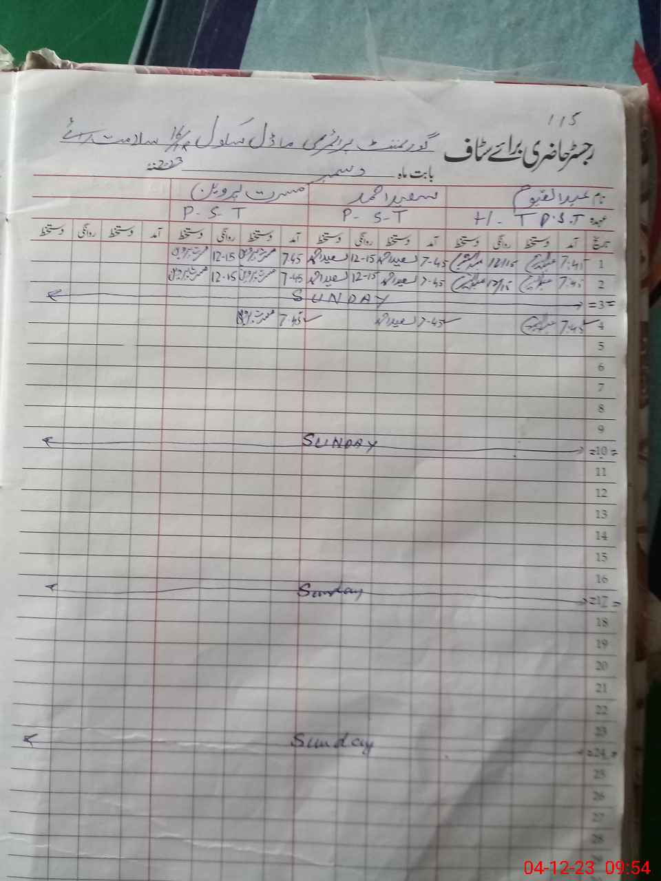| CNIC | Full Name | Designation | R/C | Absence During Last Calender Month |