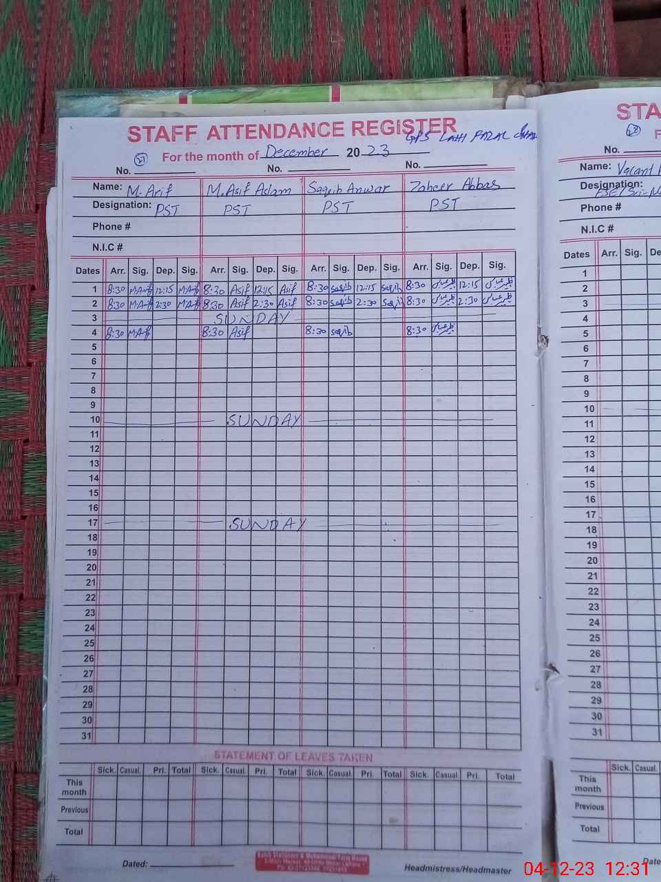 | Name: Mu**** As**** Designation: (School Headmaster's/Headmistress's) PST Phone/Cell Number: 03**** |