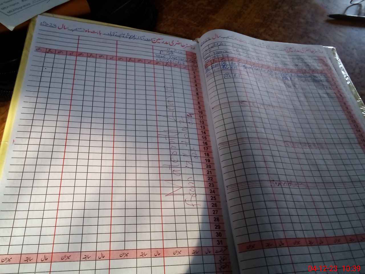 | CNIC | Full Name | Designation | R/C | Absence During Last Calender Month |