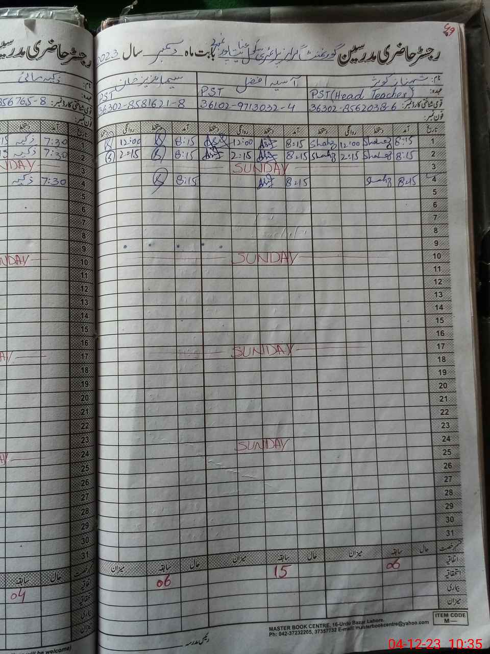| CNIC | Full Name | Designation | R/C | Absence During Last Calender Month |