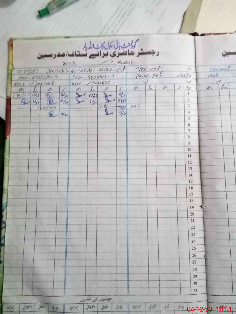 | Name: MU**** HA**** Designation: (School Headmaster's/Headmistress's) SST SCI Phone/Cell Number: 03**** |