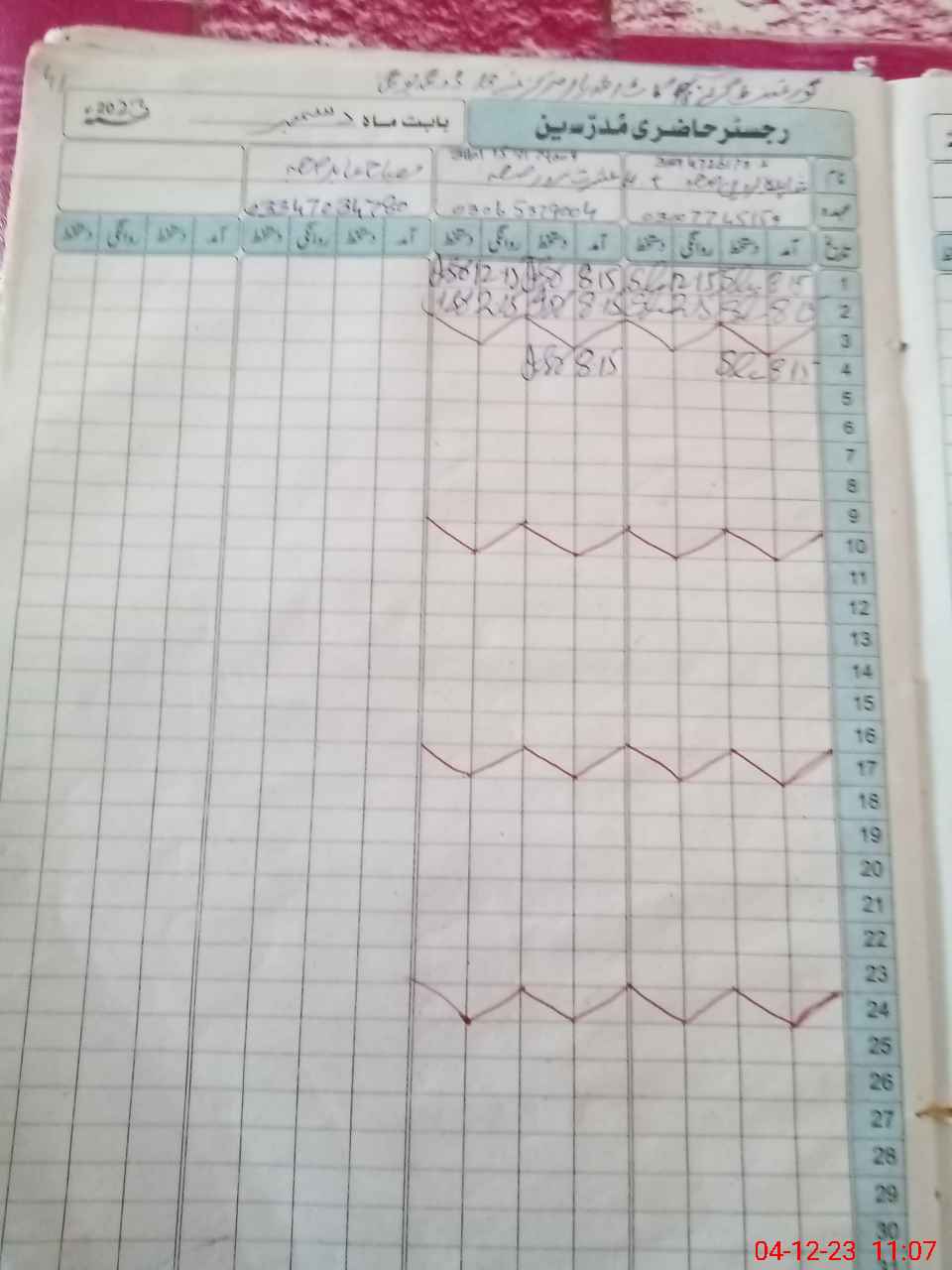 | CNIC | Full Name | Designation | R/C | Absence During Last Calender Month |
