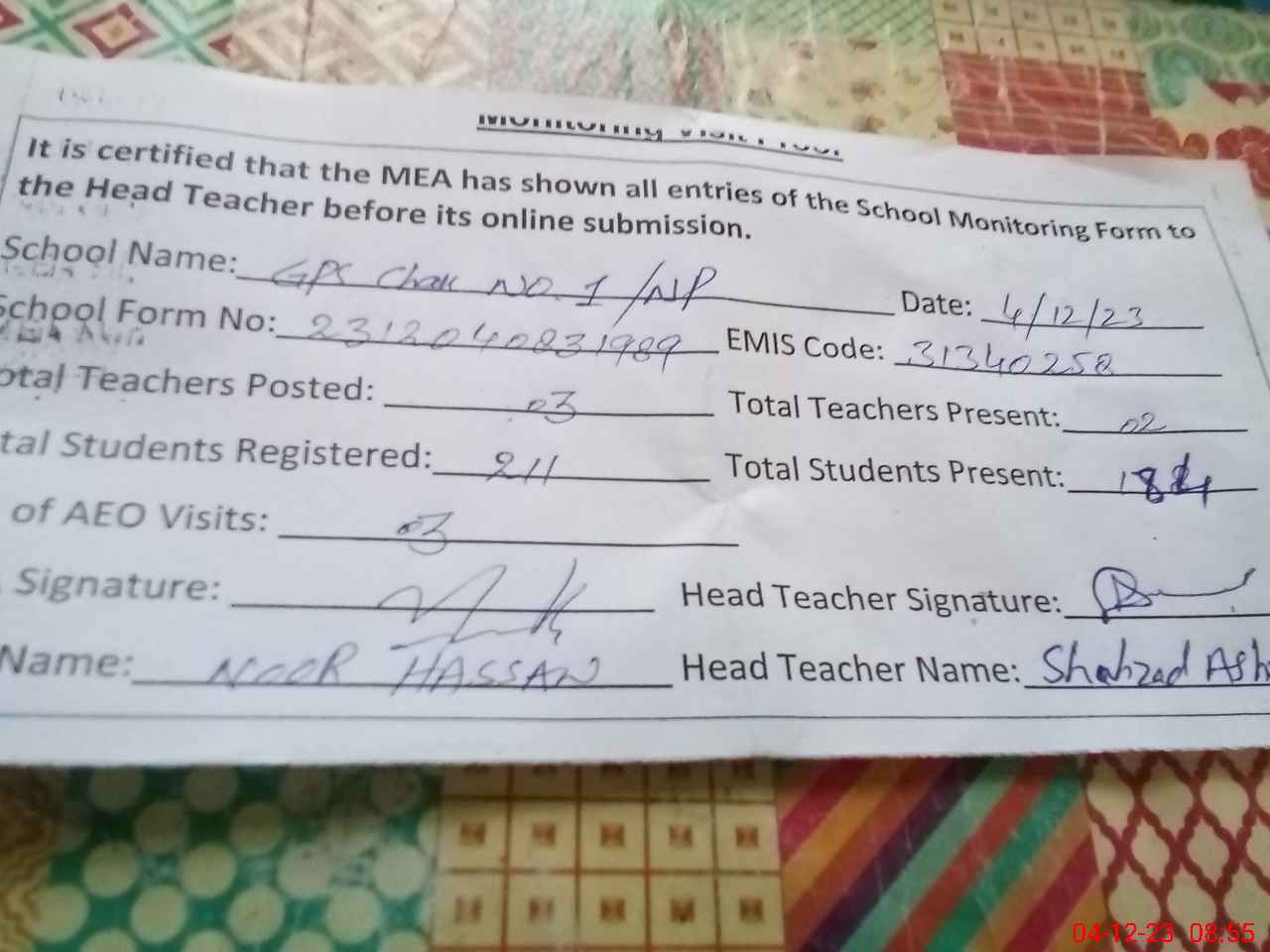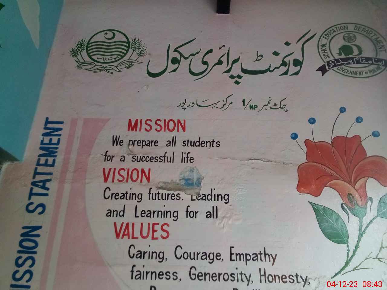 | EMIS Code: 31340258 | Name of School: GPS CHAK NO 1/NP | |||