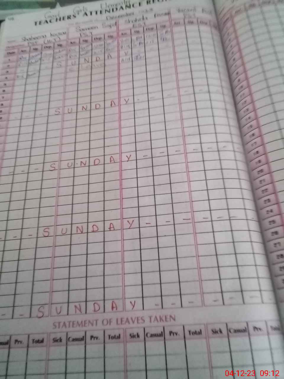 | Leave | Duty | Absent | Maternity | Medical | Ex- Pak |