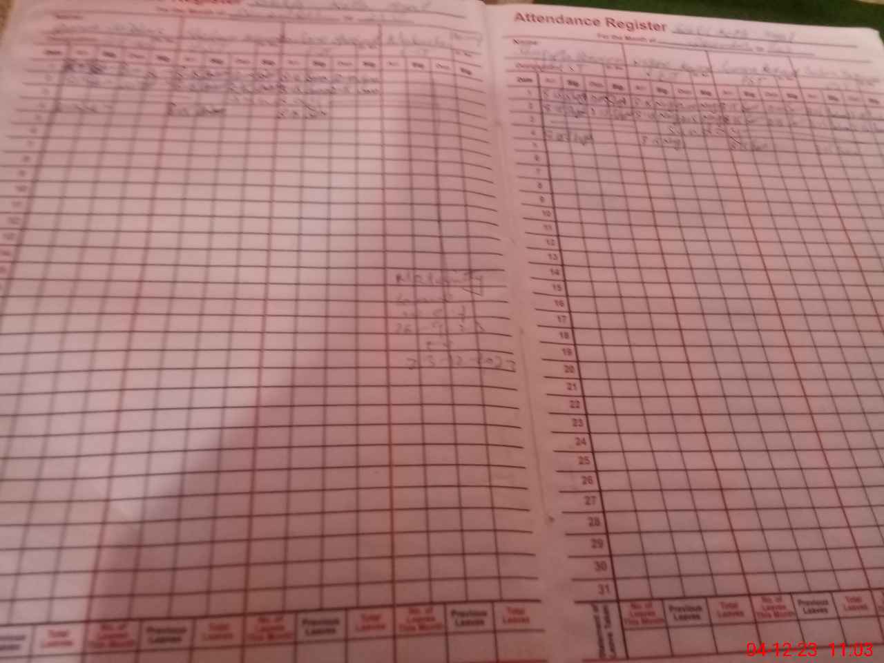 | 31**** | Ye**** Ra**** | NQ | Contract | 0 | 0 | 30 | 0 | 0 | 0 | 0 | 0 | 0 | Absent (Un-Authorized) |