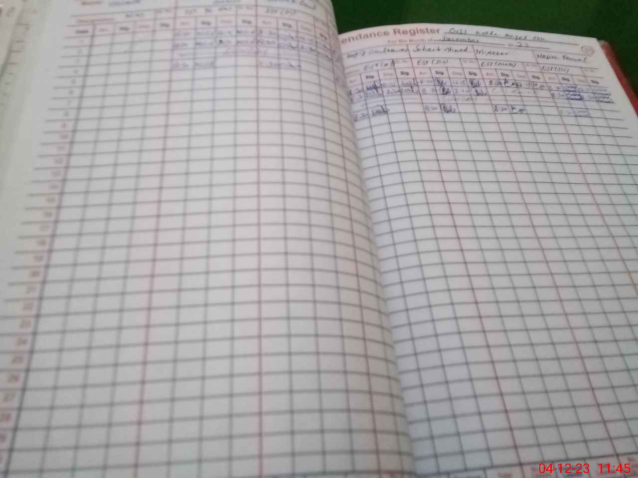 | CNIC | Full Name | Designation | R/C | Absence During Last Calender Month |