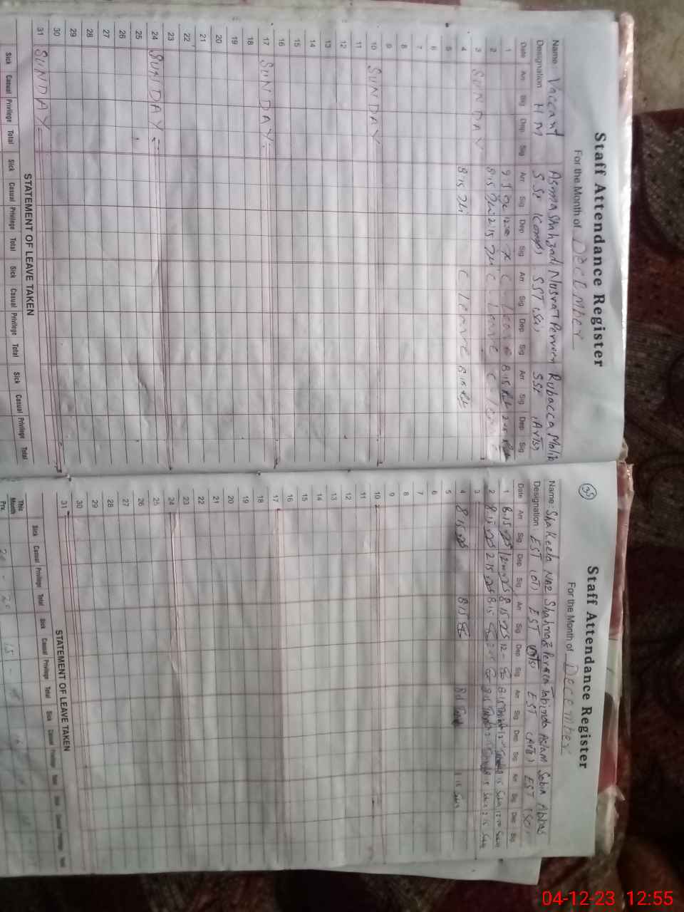 | Leave | Duty | Absent | Maternity | Medical | Ex- Pak |