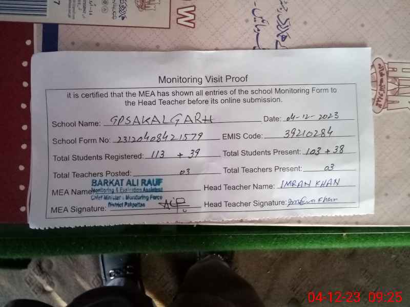 | EMIS Code: 39210284 | Name of School: GPS AKAL GARH P.O KARTAR PUR | |||