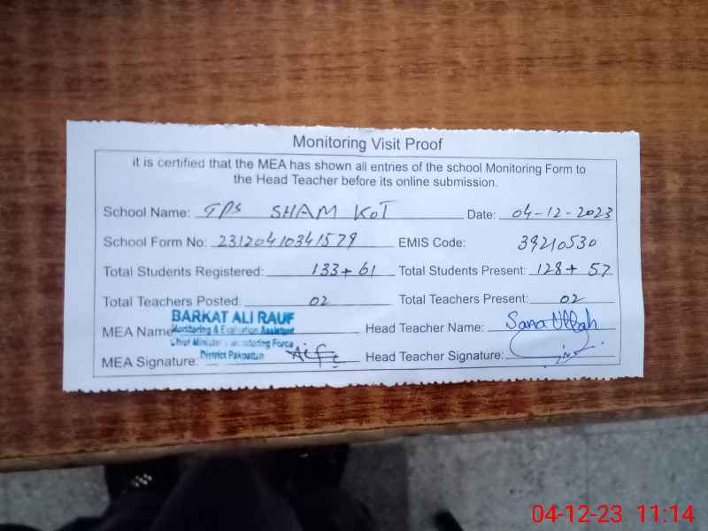 | EMIS Code: 39210530 | Name of School: GPS CHAK SHAM KOT | |||
