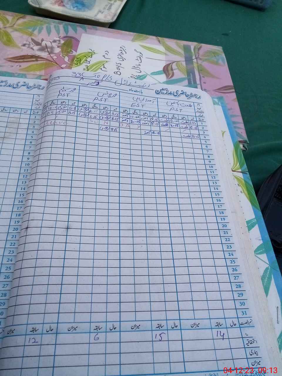 | CNIC | Full Name | Designation | R/C | Absence During Last Calender Month |