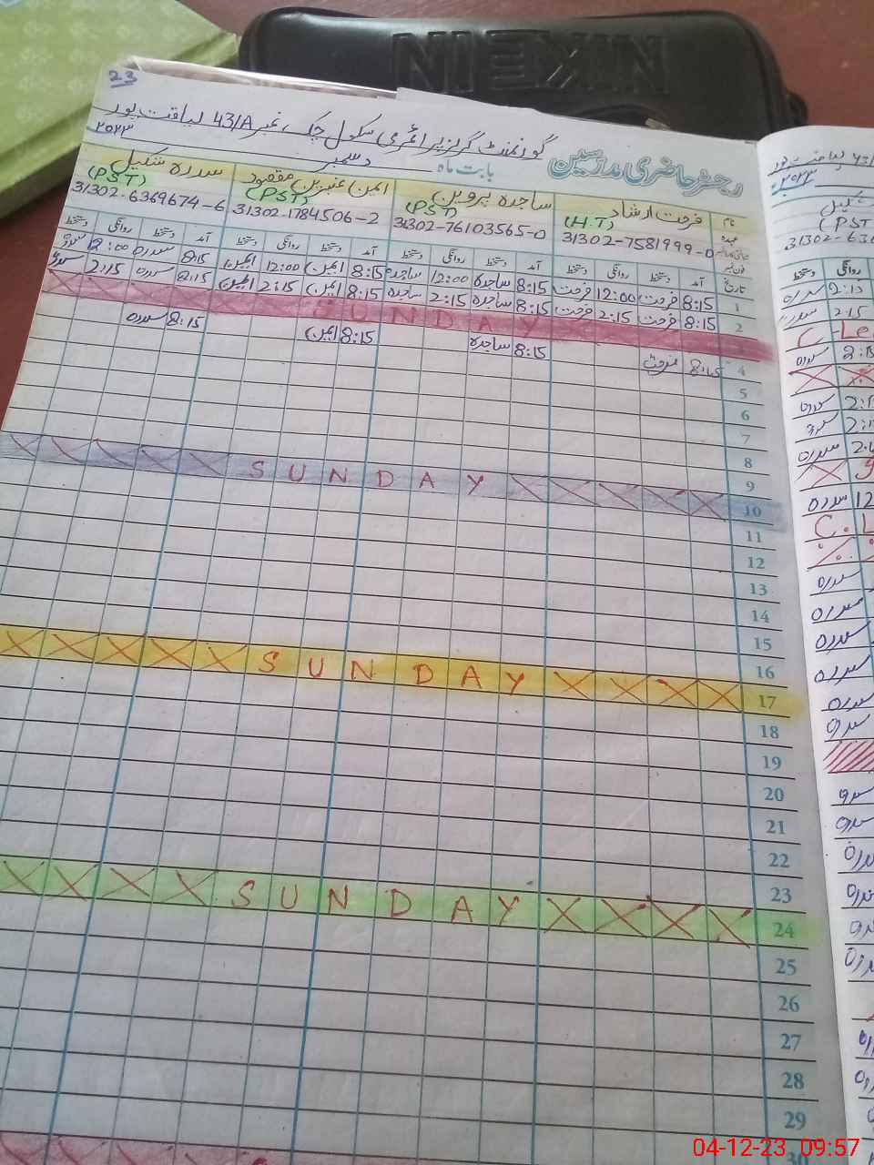 | Name: SI**** SH**** Designation: (School Headmaster's/Headmistress's) PST Phone/Cell Number: 03**** |
