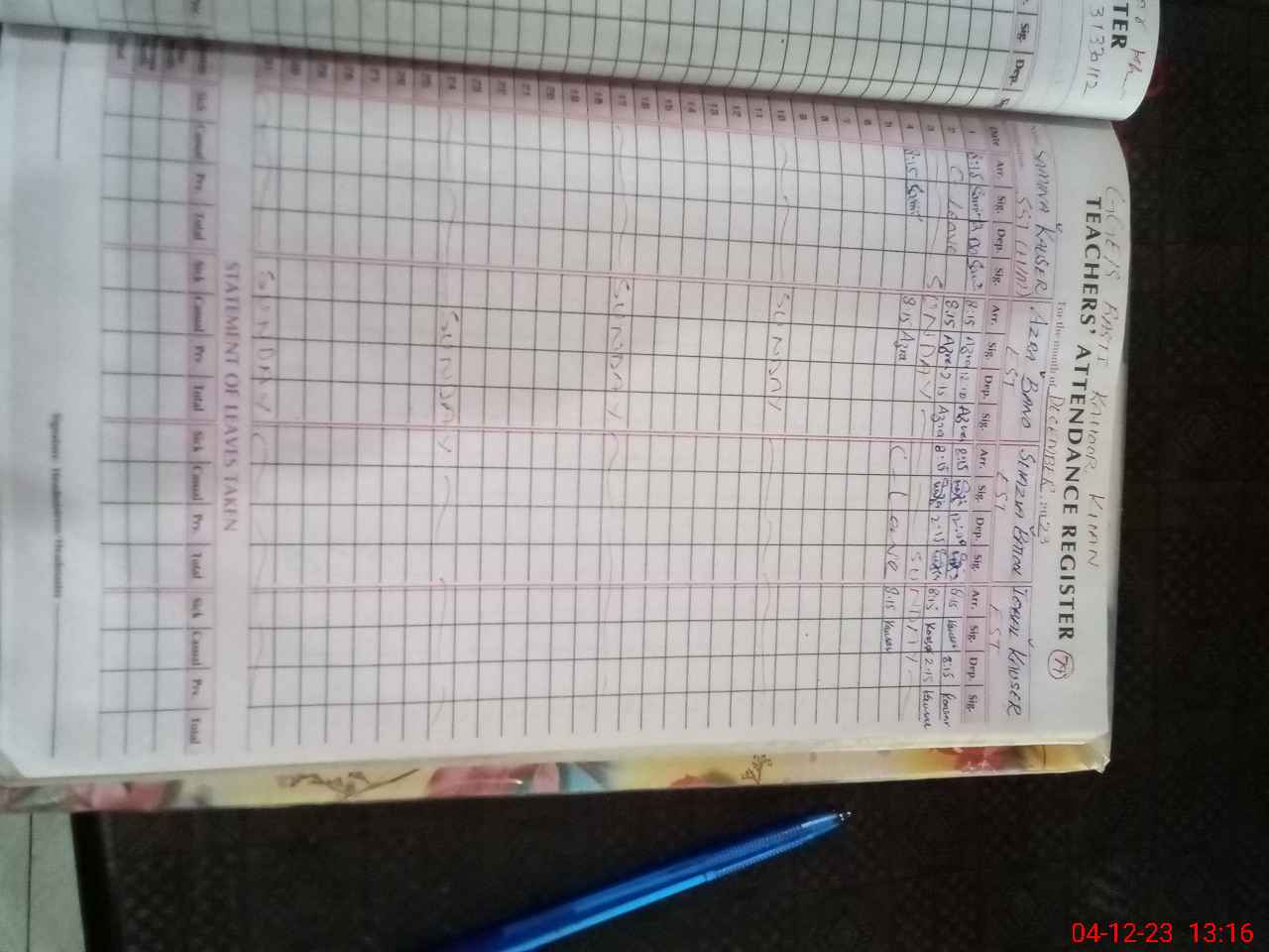 | Leave | Duty | Absent | Maternity | Medical | Ex- Pak |
