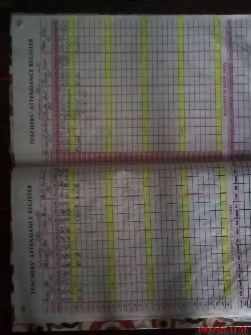 | CNIC | Full Name | Designation | R/C | Absence During Last Calender Month |