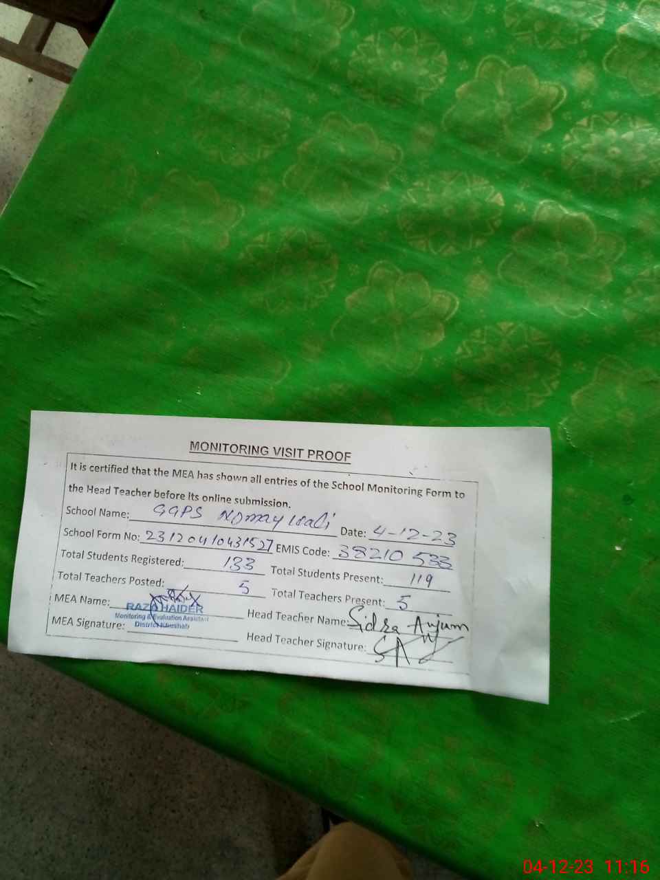 | EMIS Code: 38210533 | Name of School: GGPS NAMAY WALI | |||