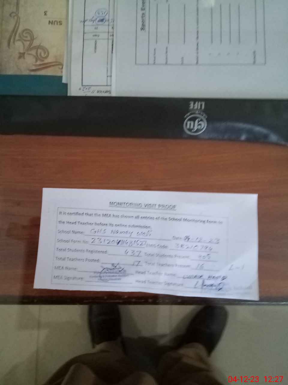 | EMIS Code: 38210794 | Name of School: GHS NAMAY WALI | |||