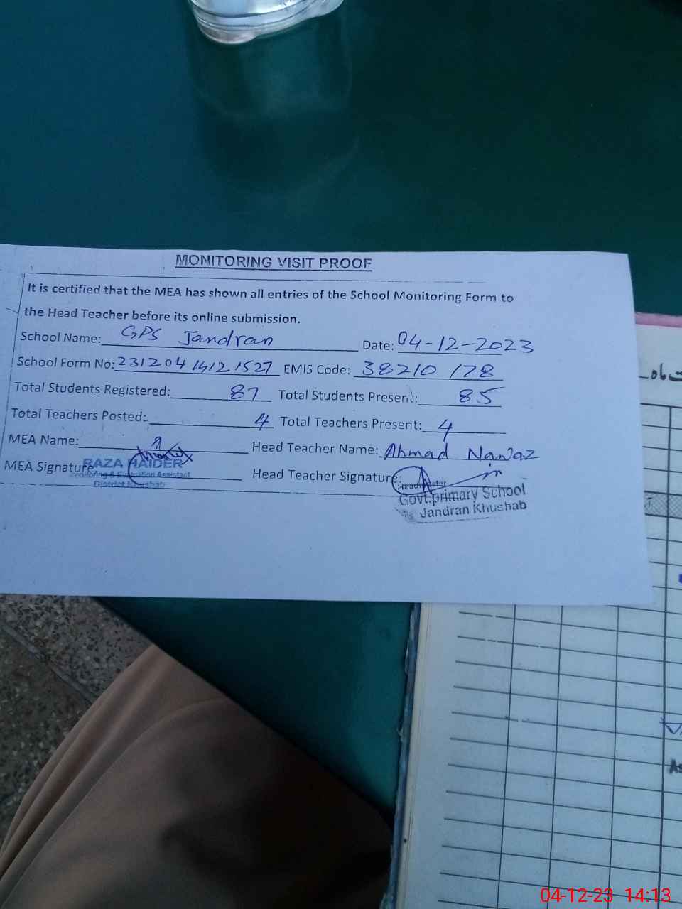 | EMIS Code: 38210178 | Name of School: GPS JANDRAN | |||