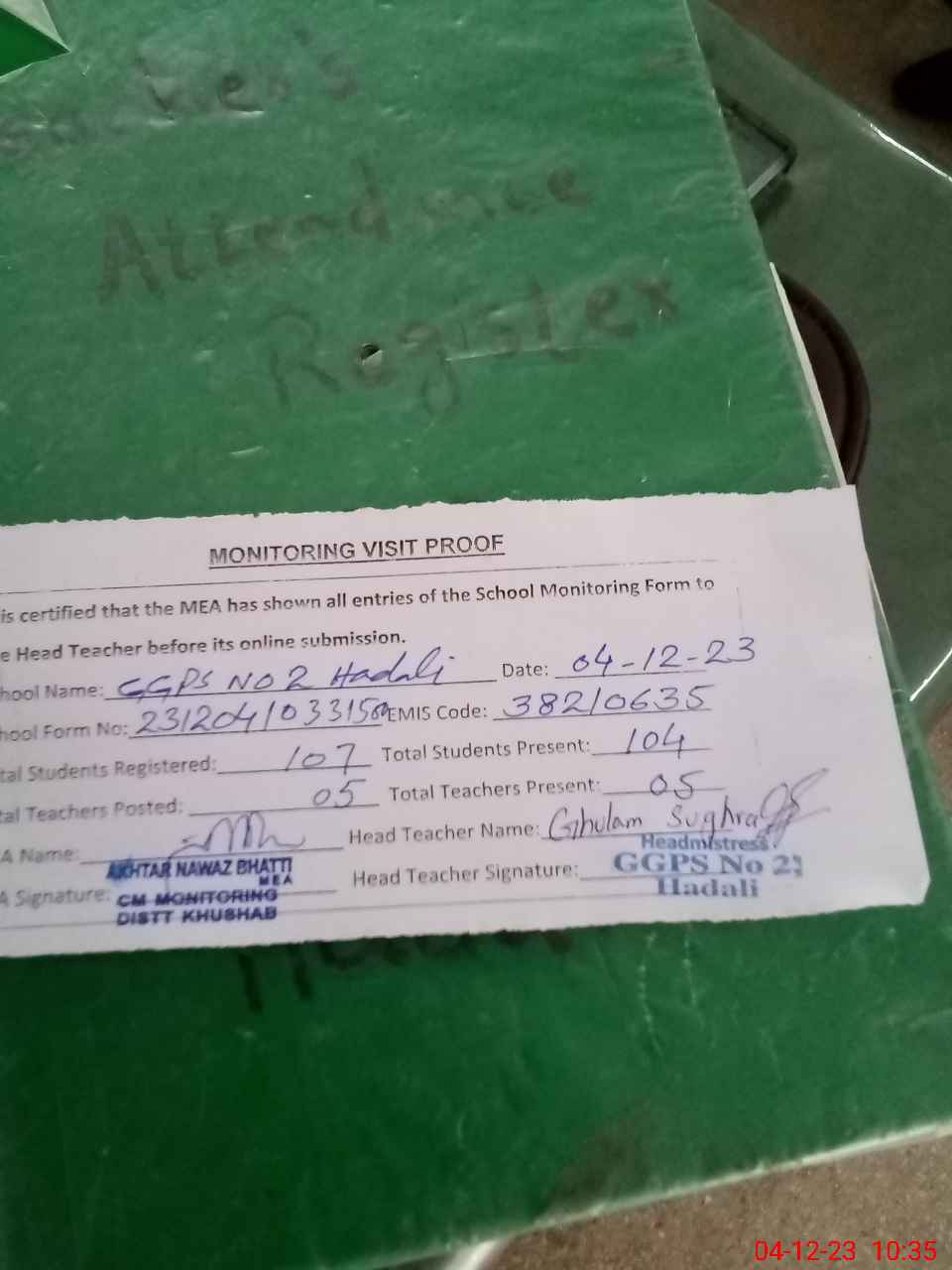 | EMIS Code: 38210635 | Name of School: GGPS NO. 2 HADALI | |||