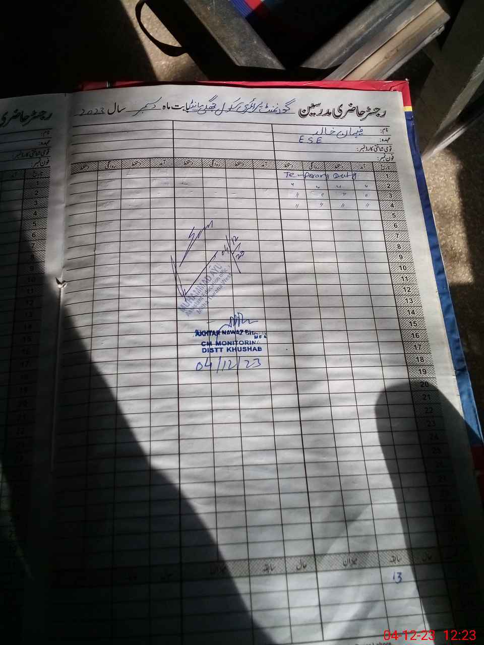 | CNIC | Full Name | Designation | R/C | Absence During Last Calender Month |