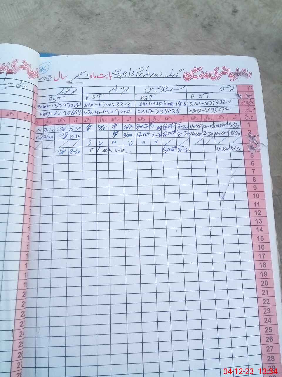 | Name: MU**** HA**** Designation: (School Headmaster's/Headmistress's) PST Phone/Cell Number: 03**** |