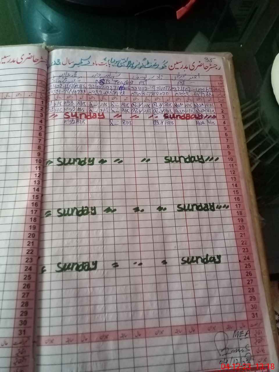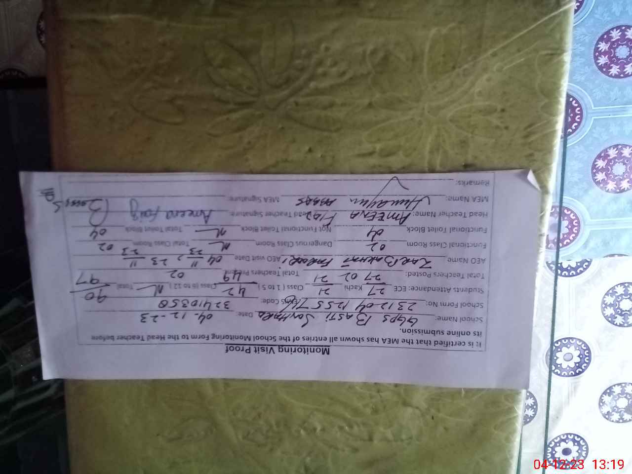 | Attendance Register | Head Teacher | MEA with School | Visit Proof |
