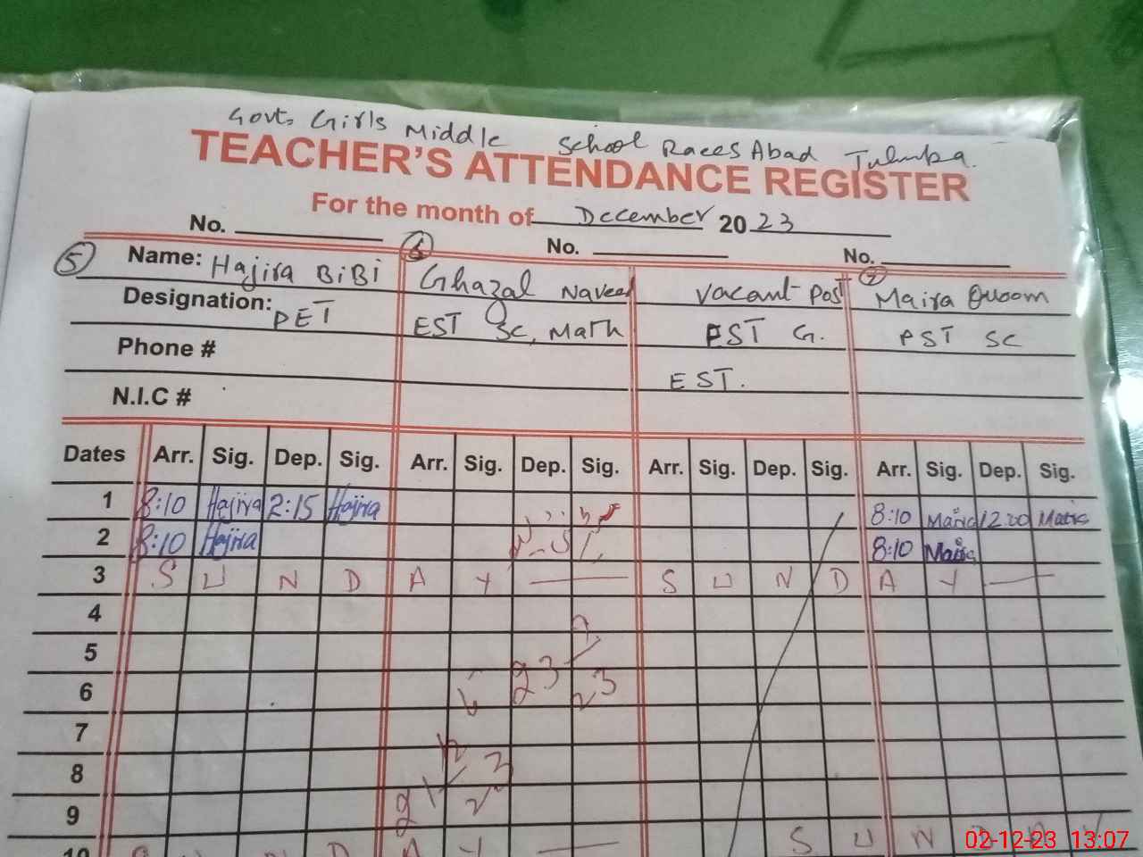 | Name: Ar**** Ba**** Designation: (School Headmaster's/Headmistress's) S.S.T.(Science) Phone/Cell Number: 03**** |
