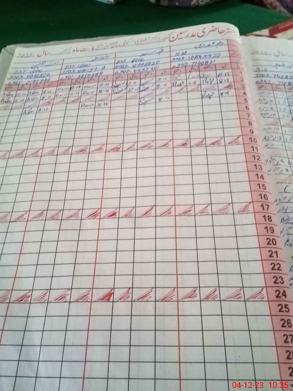 | CNIC | Full Name | Designation | R/C | Absence During Last Calender Month |