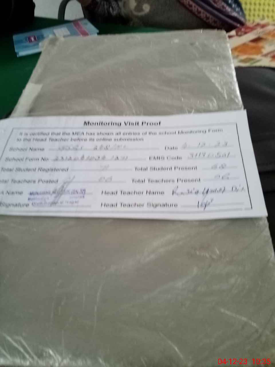 | Attendance Register | Head Teacher | MEA with School | Visit Proof |