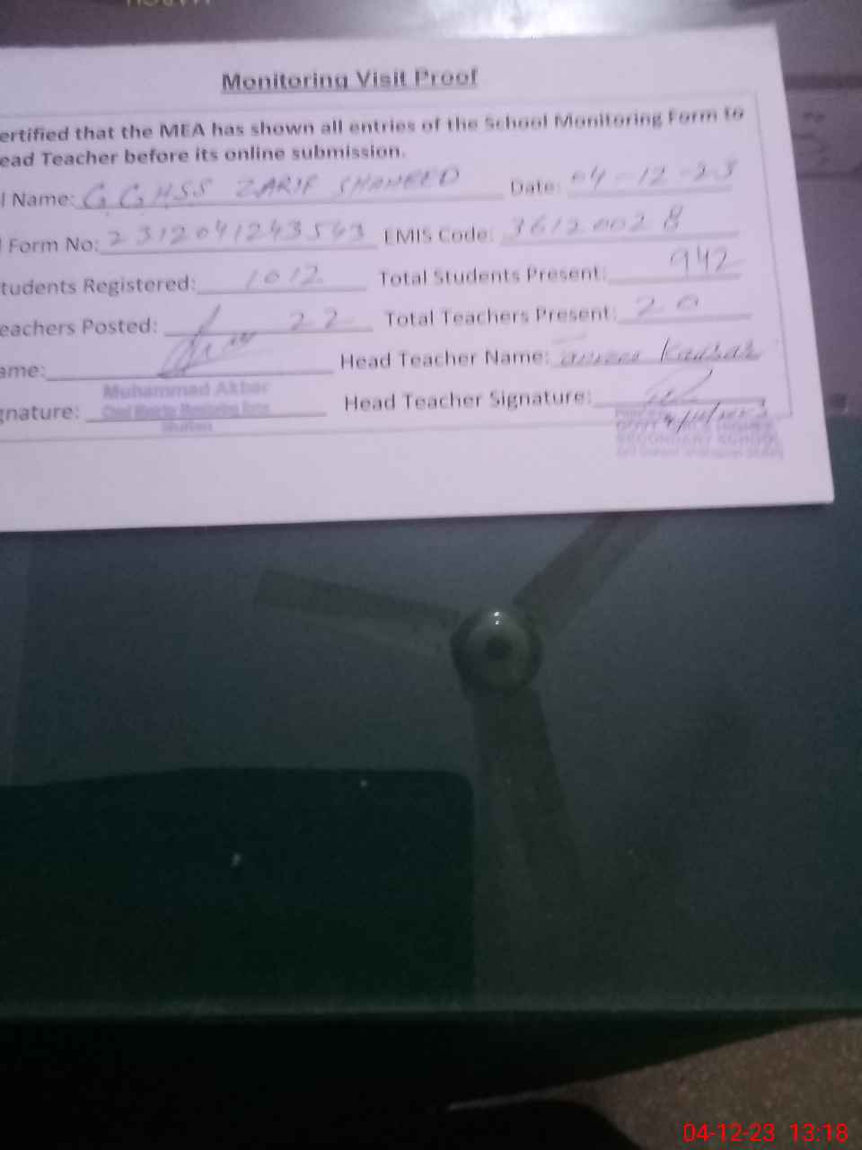 | EMIS Code: 36120028 | Name of School: GGHSS ZARIF SHAHEED SHAUJABAD | |||