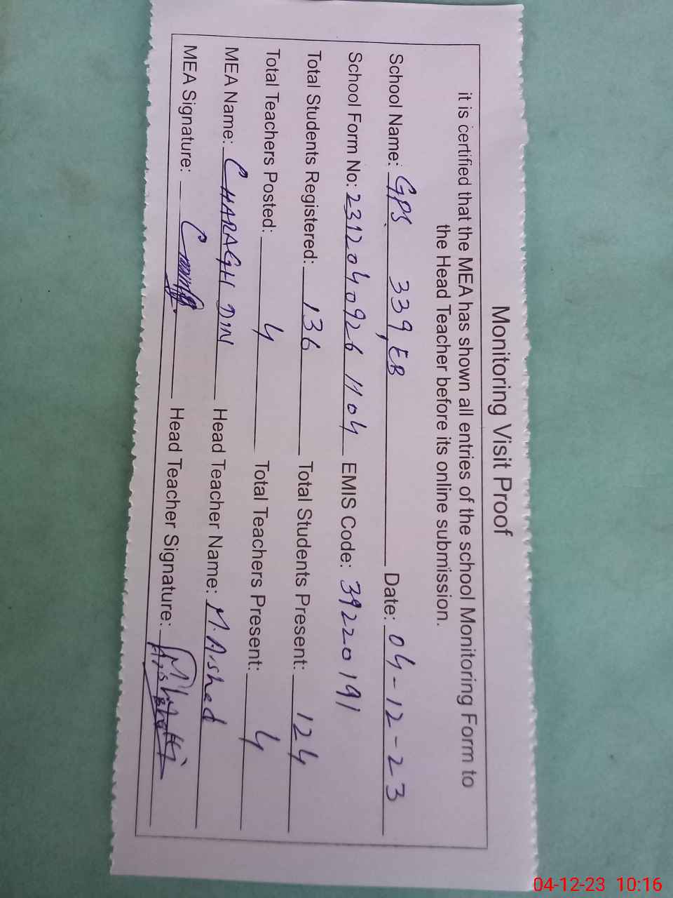 | EMIS Code: 39220191 | Name of School: GPS 339 EB | |||