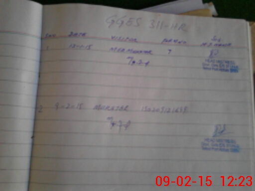 | Monitoring Date: 09-02-2015 | Start Time: 09-02-2015 11:47 AM | End Time: 09-02-2015 12:24 PM | Name of MEA: Mu**** ah**** BN**** 29 | |