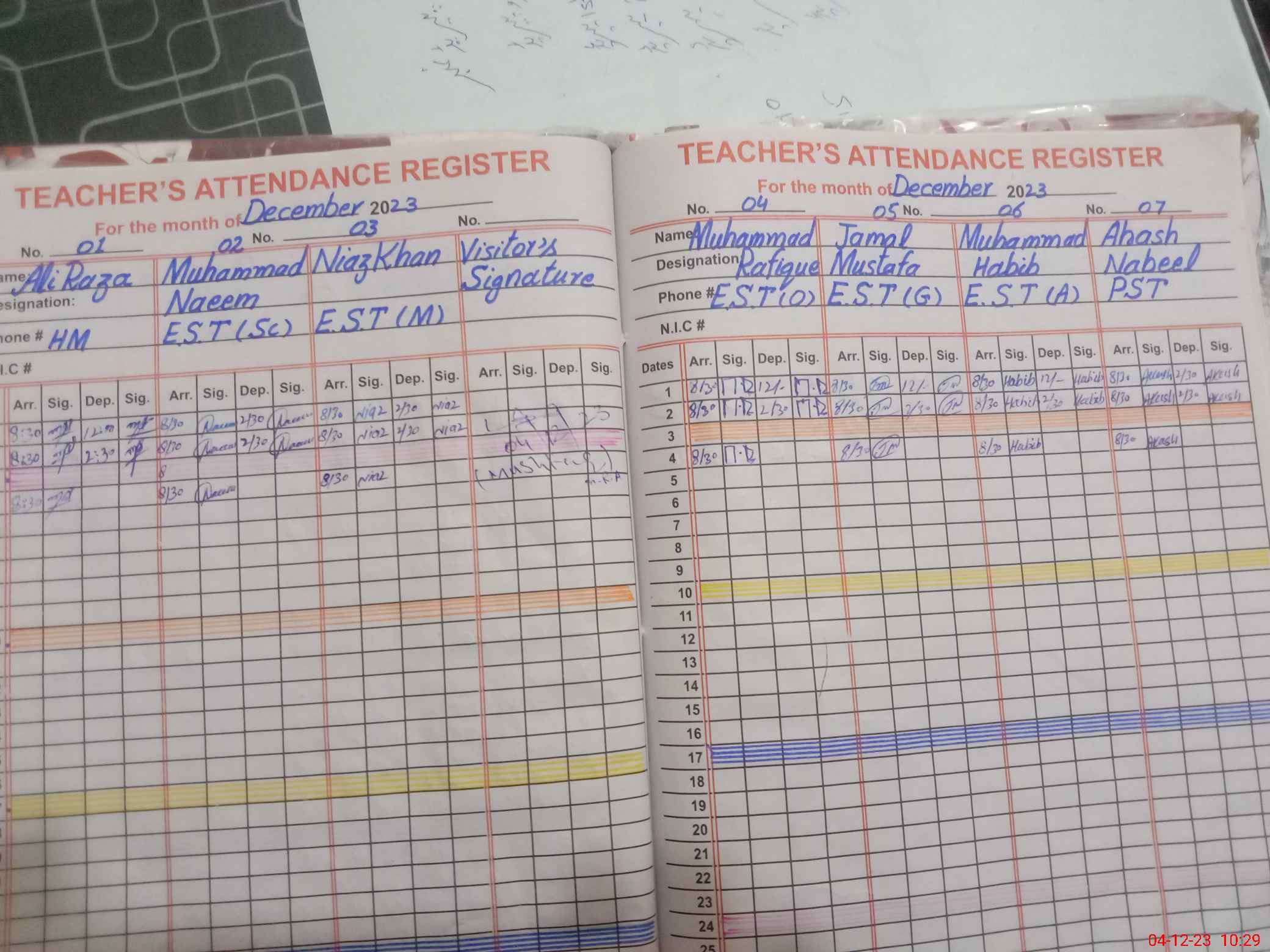 | CNIC | Full Name | Designation | R/C | Absence During Last Calender Month |