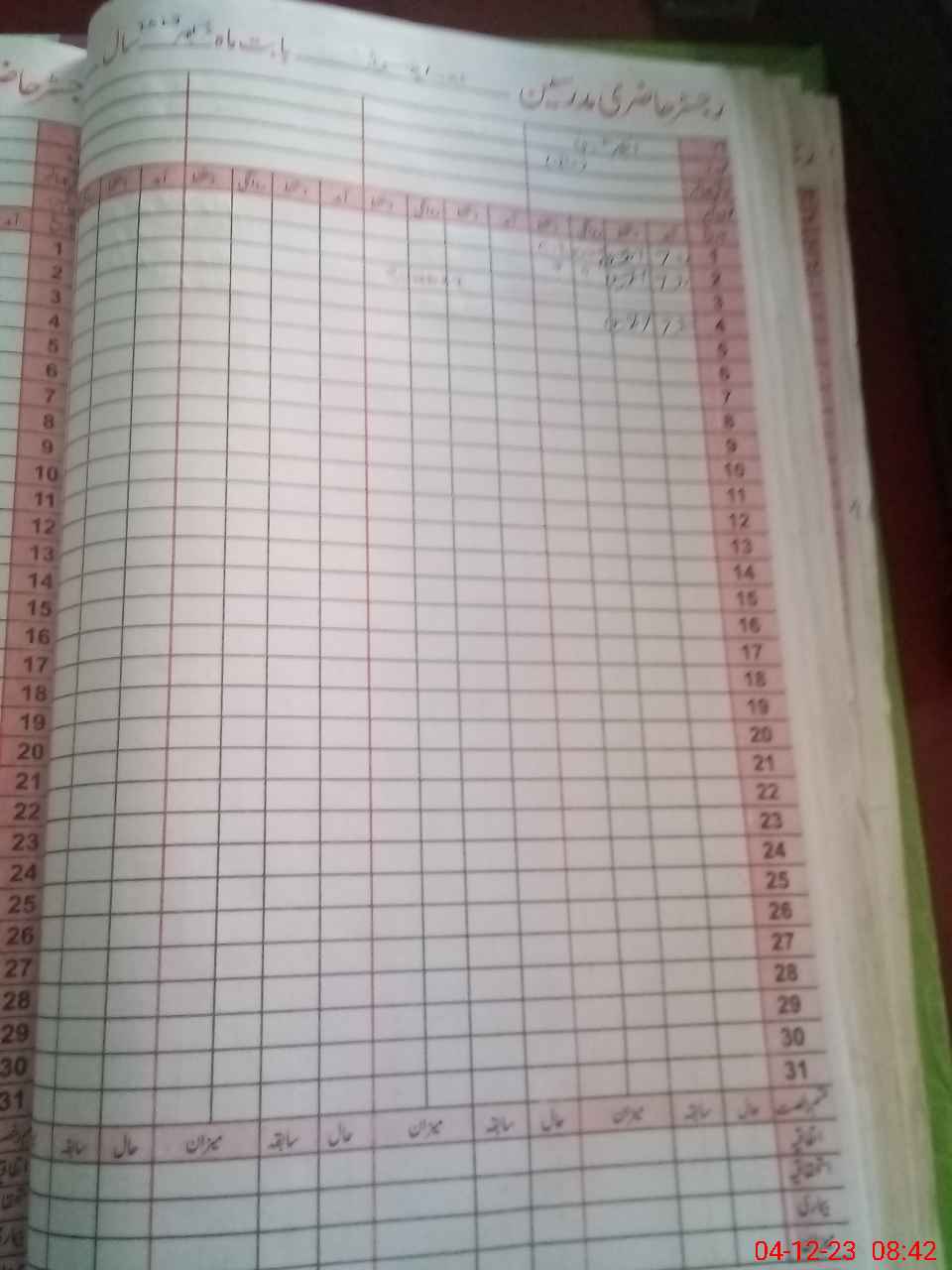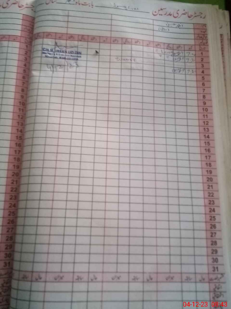 | CNIC | Full Name | Designation | R/C | Absence During Last Calender Month |