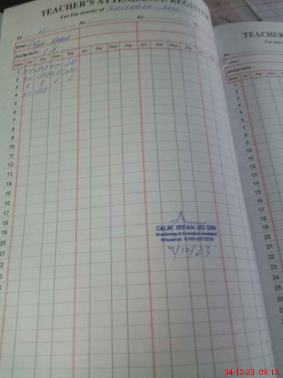 | Name: TA**** NA**** Designation: (School Headmaster's/Headmistress's) PST Phone/Cell Number: 03**** |