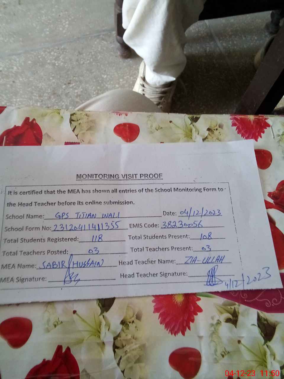 | EMIS Code: 38230056 | Name of School: GPS TITIAN WALI | |||