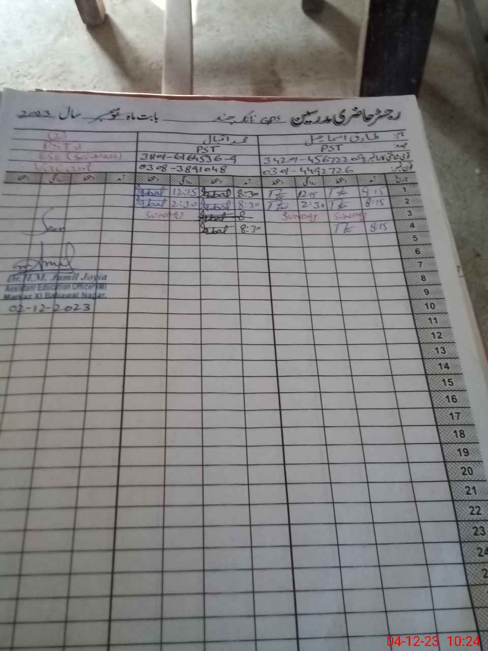 | Name: Ta**** Is**** Designation: (School Headmaster's/Headmistress's) PST Phone/Cell Number: 03**** |
