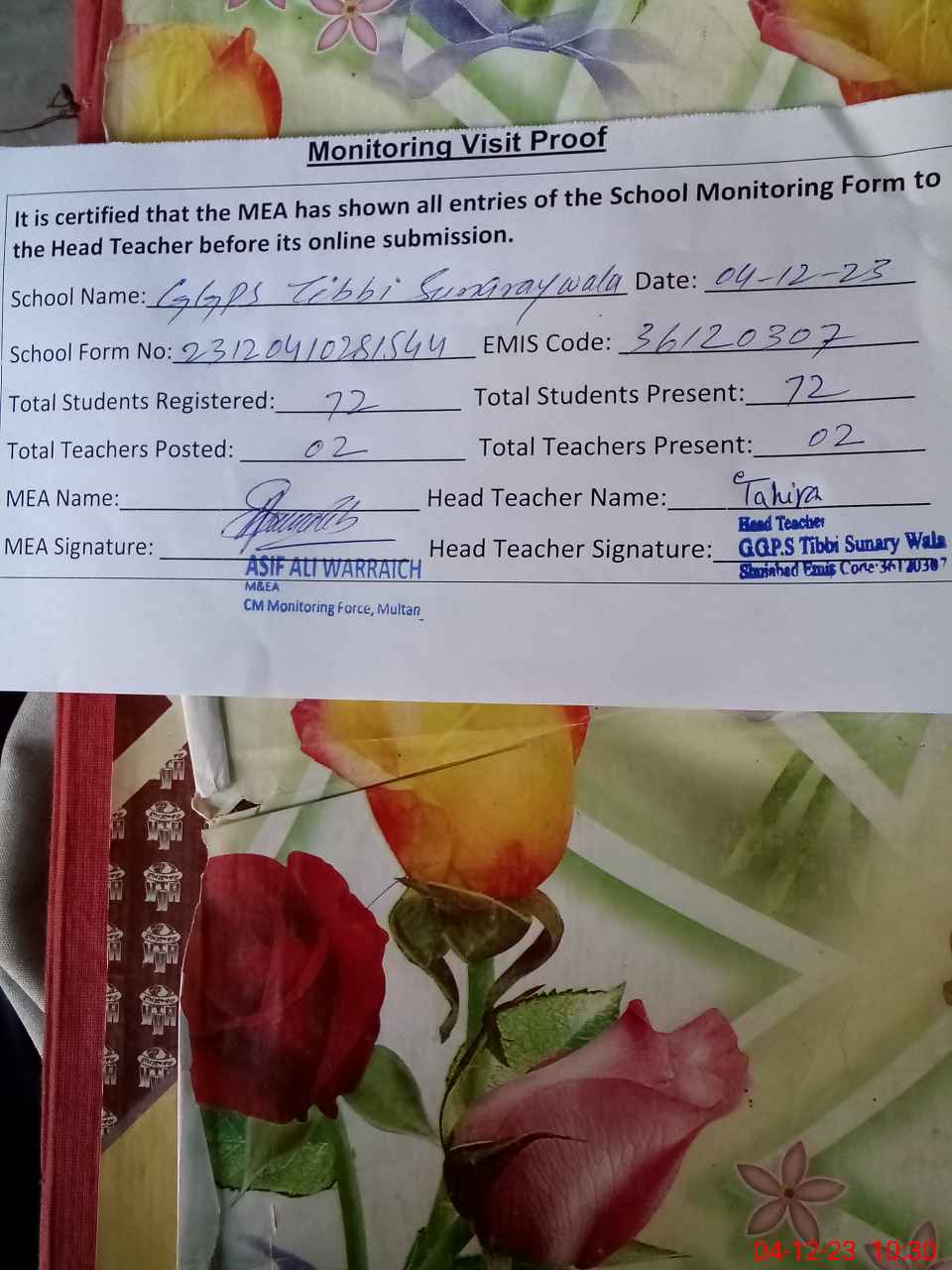 | EMIS Code: 36120307 | Name of School: GGPS TIBBI SUNARAY WALA TEH. SHUJABAD | |||