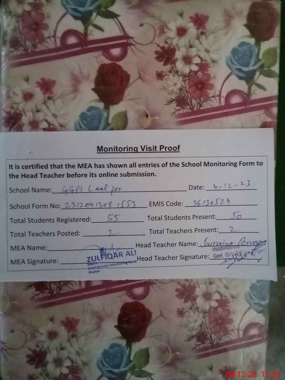 | EMIS Code: 36130524 | Name of School: GGPS LAAL PUR | |||