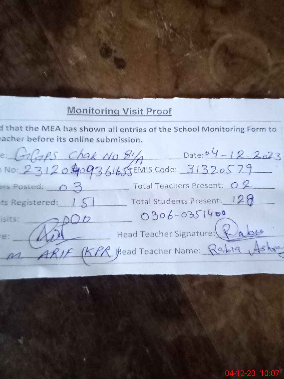 | Name: Ra**** As**** Designation: (School Headmaster's/Headmistress's) PST Phone/Cell Number: 03**** |