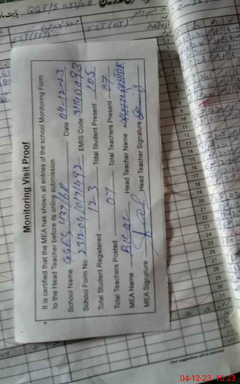 | EMIS Code: 31140093 | Name of School: GGES CHAK 437/6-R | |||