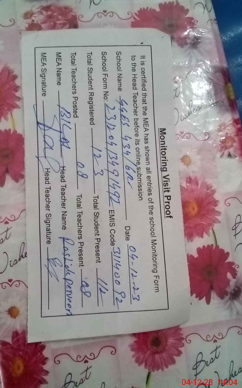 | EMIS Code: 31140092 | Name of School: GGES CHAK 434/6-R | |||
