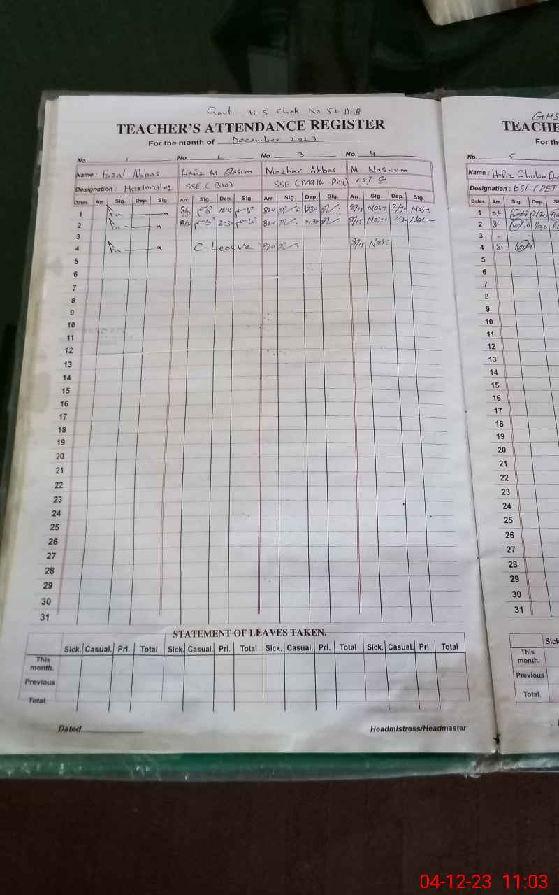 | Name: Mu**** Hu**** Designation: (School Headmaster's/Headmistress's) HEADMASTER Phone/Cell Number: 03**** |