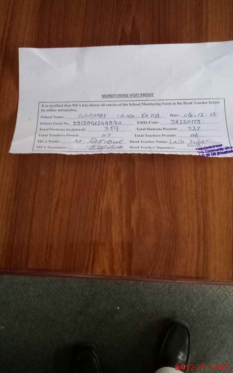 | EMIS Code: 38220173 | Name of School: GGECMS CHAK NO. 50/DB | |||