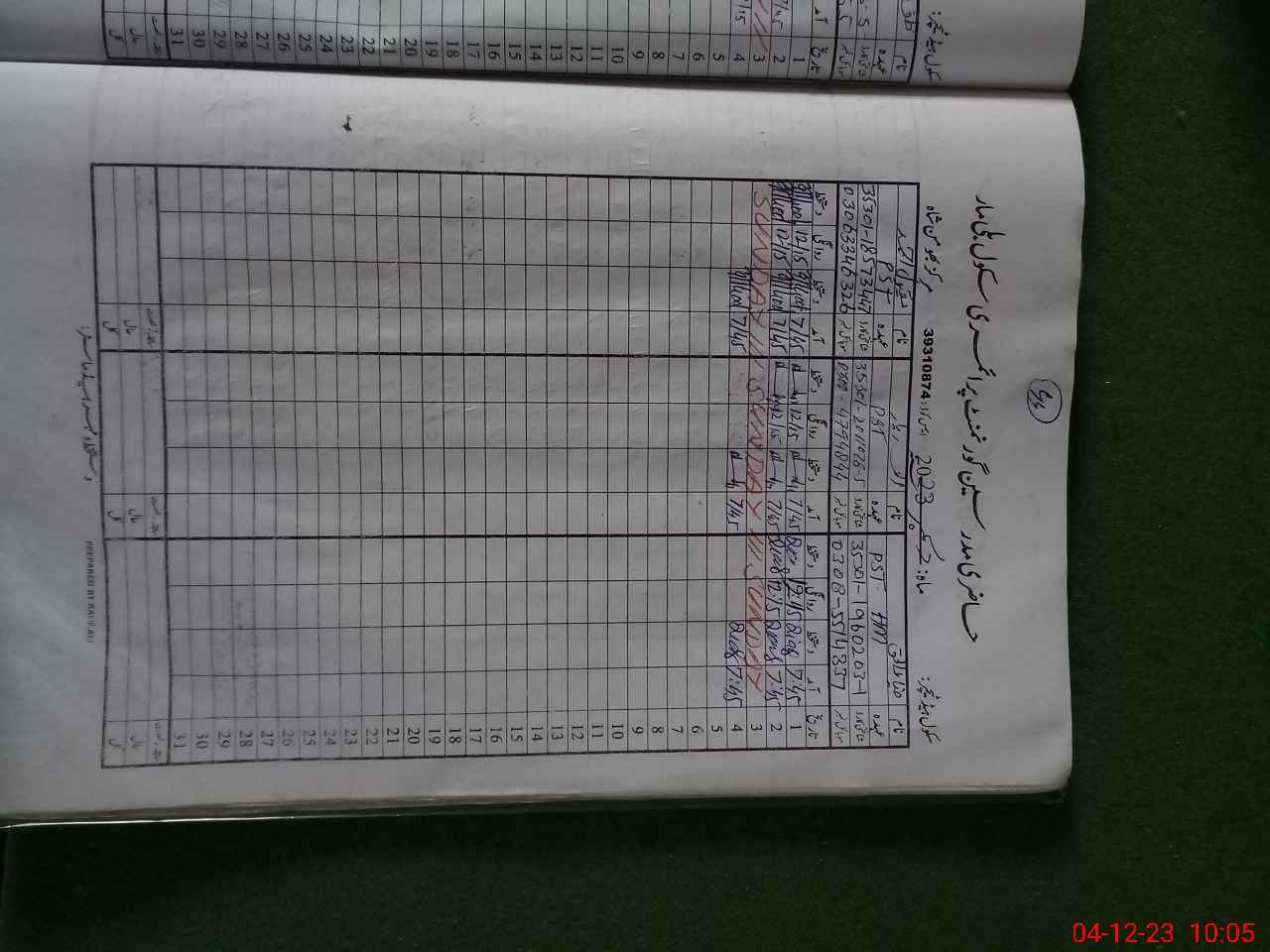 | CNIC | Full Name | Designation | R/C | Absence During Last Calender Month |