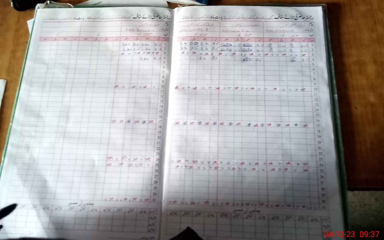 | CNIC | Full Name | Designation | R/C | Absence During Last Calender Month |