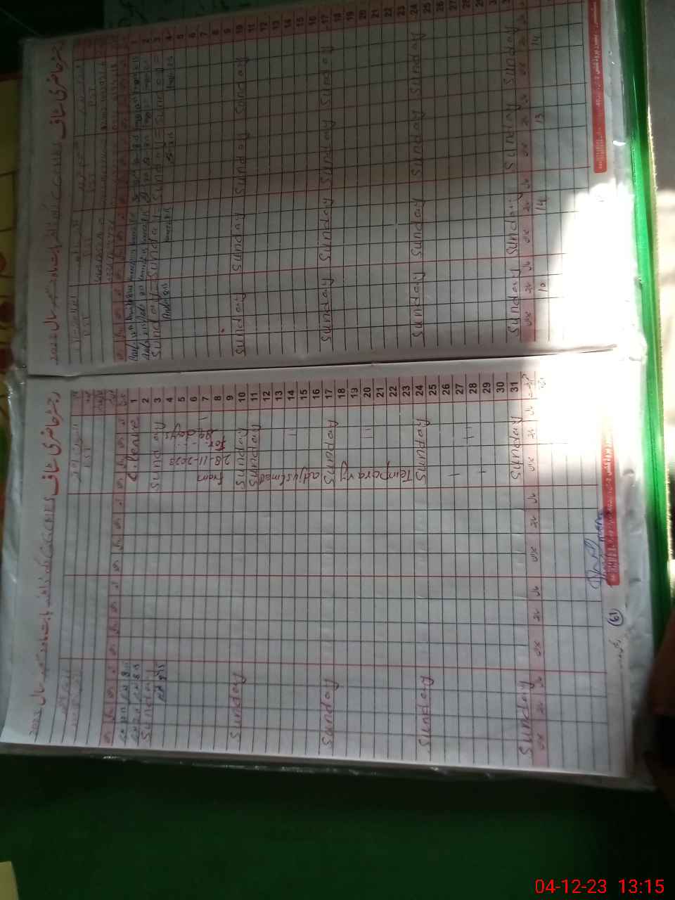 | CNIC | Full Name | Designation | R/C | Absence During Last Calender Month |