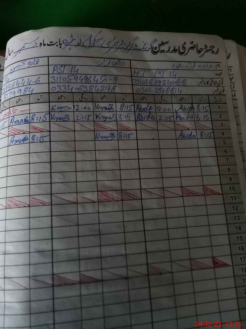 | Name: AB**** BU**** Designation: (School Headmaster's/Headmistress's) PST Phone/Cell Number: 03**** |